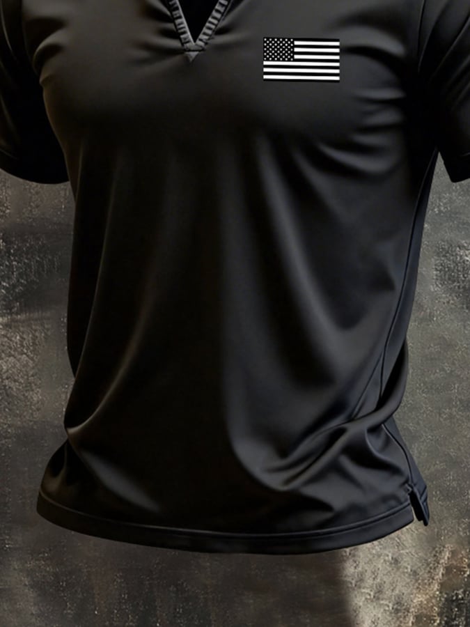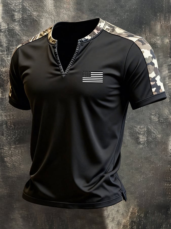 Men'S Retro Color-Block Camouflage "Patriot" V-Neck Short-Sleeve T-Shirt