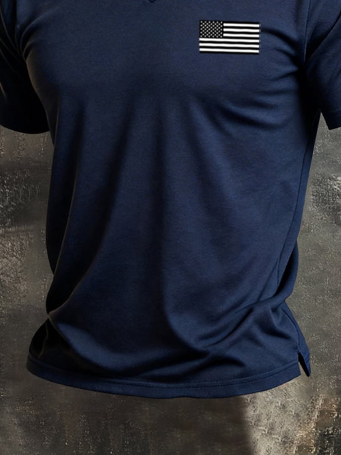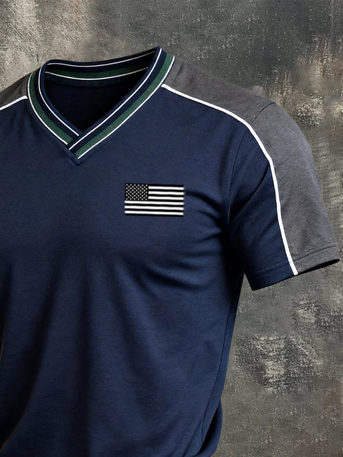 Men's Retro Color-Block "Patriot" V-Neck Short-Sleeve T-Shirt