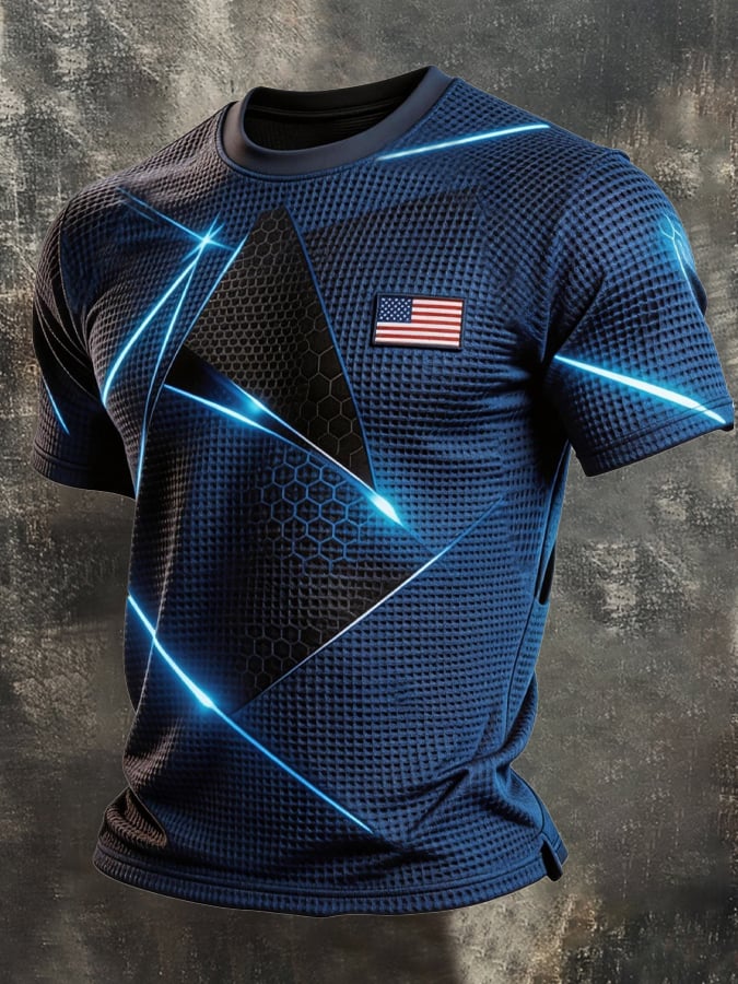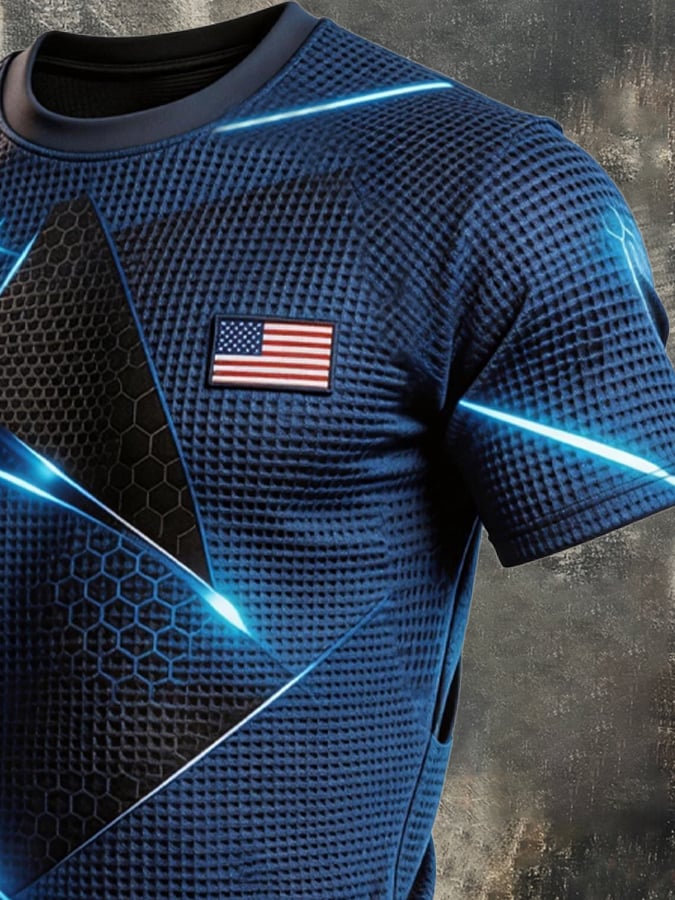 Men's Retro Color-Block Waffle-Knit "Patriot" T-Shirt