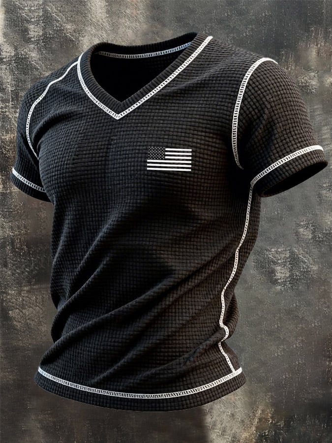 Men's Retro Patriot Patchwork Waffle T-shirt